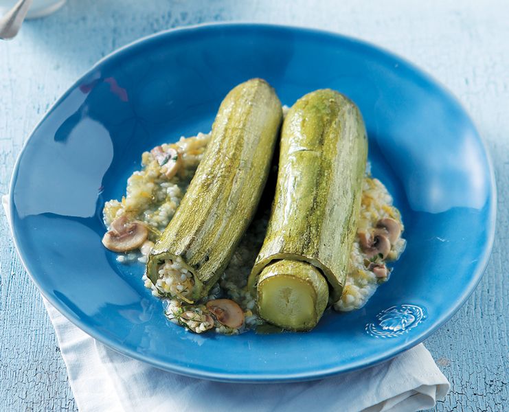 Κολοκυθάκια γεμιστά με πλιγούρι και μανιτάρια αντί για κιμά