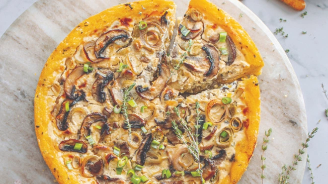 Τάρτα με μανιτάρια, σπανάκι, κατσικίσιο τυρί και καπνιστό Μετσόβου