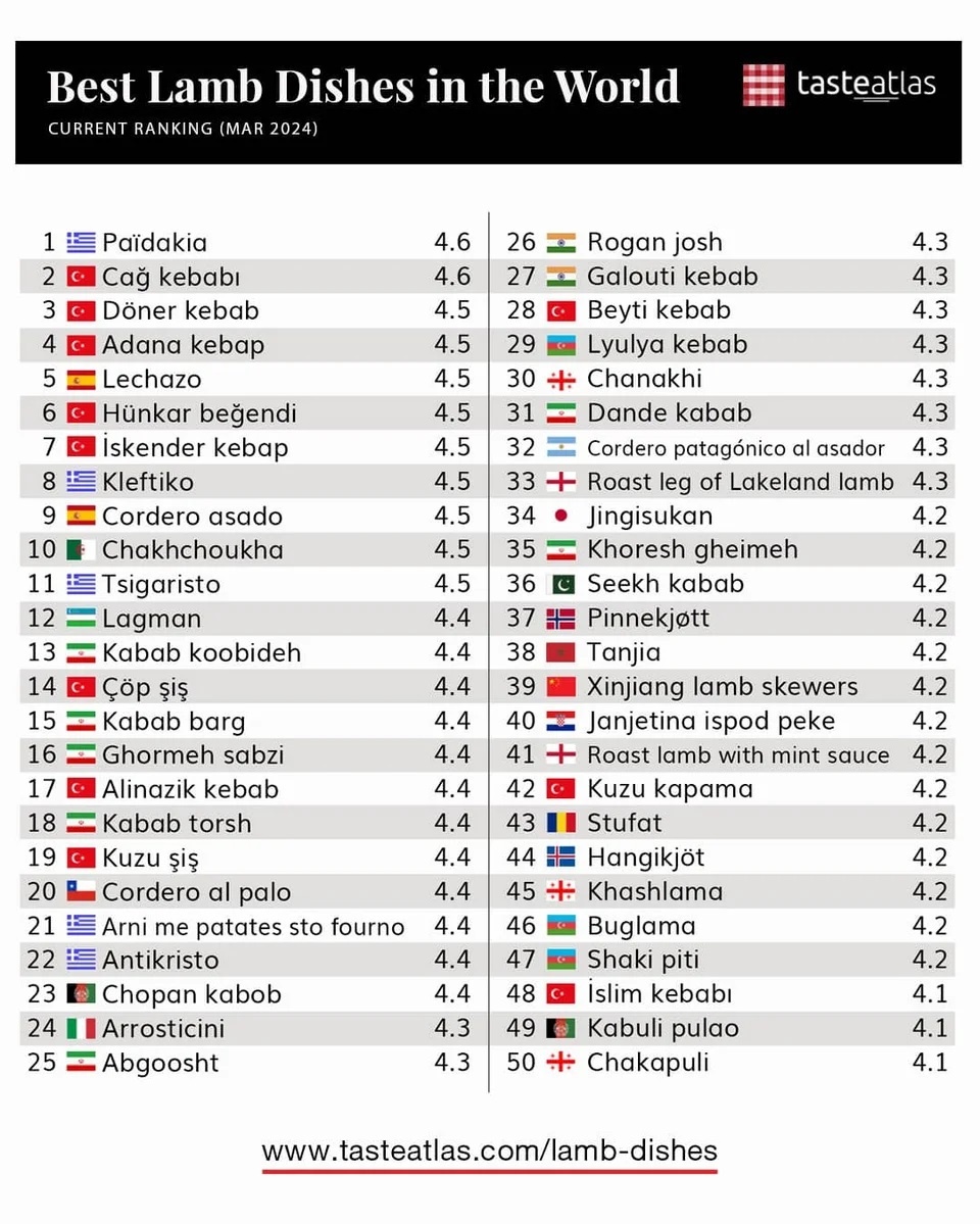 Η λίστα του Taste Atlas με τα 50 καλύτερα πιάτα με αρνί στον κόσμο: