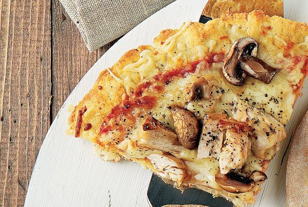 Φτιάχνουμε 2 πίτσες με διάμετρο 30-35 εκ. η καθεμία. Ανοίγουμε το κάθε κομμάτι ζύμης είτε με τις άκρες των δαχτύλων πιέζοντας με κυκλικές κινήσεις σε αλευρωμένη επιφάνεια, είτε με πλάστη αν θέλουμε να γίνει πιο λεπτή και πιο τραγανή. Πασπαλίζοντας το ταψάκι με λίγο καλαμποκάλευρο πετυχαίνουμε πιο τραγανή κρούστα στο κάτω μέρος της πίτσας. Διατηρείται στο ψυγείο για τρεις μέρες καλυμμένη με μεμβράνη και δύο μήνες στην κατάψυξη.