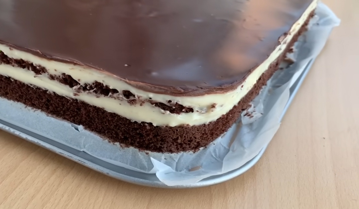 Με ένα μαχαίρι αφαιρούμε την επιφάνεια από το παντεσπάνι, και την βάζουμε σε ένα πιάτο. Στην συνέχεια, περιχύνουμε πάνω από το παντεσπάνι, στο ταψάκι μας, ένα με δύο ποτήρια γάλα, ομοιόμορφα σε όλη την επιφάνεια.