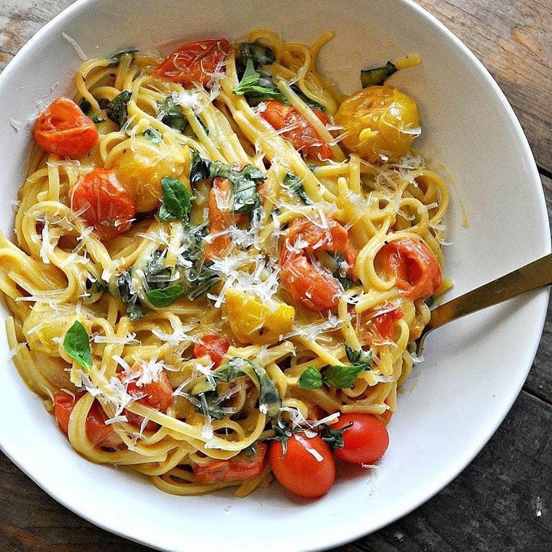 Σουρώστε τα ζυμαρικά και ανακατέψτε με το μείγμα από τα ντοματίνια.