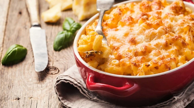 Η εκτέλεση της συνταγής για ζυμαρικά στο φούρνο με τυριά που έχουν ξεμείνει στο ψυγείο