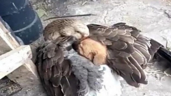 Η χήνα, βρίσκοντας το κουτάβι, το έβαλε κάτω από τα φτερά της, το τύλιξε προστατευτικά και μάλιστα, κάθισε με τέτοιο τρόπο ώστε, το κουταβάκι να μπορεί να κοιμηθεί άνετα.