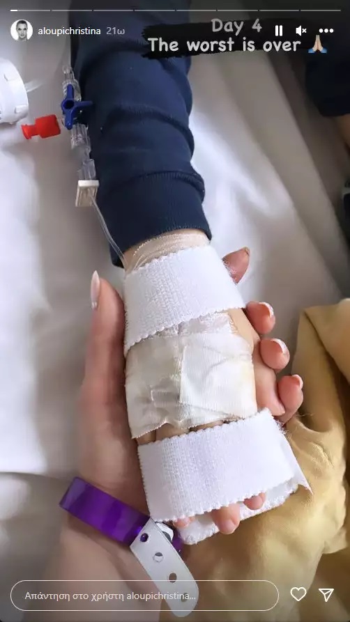 Πιο συγκεκριμένα, το μεσημέρι του Σαββάτου ανέβασε φωτογραφία να κρατά το χεράκι του γιου της αναφέροντας πως νοσηλεύεται 4 μέρες στο νοσοκομείο.