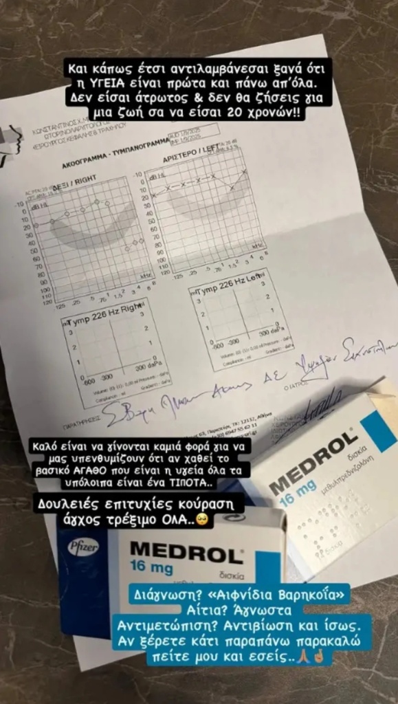 «Διάγνωση; Αιφνίδια βαρηκοΐα. Αίτια; Άγνωστα. Αντιμετώπιση; Αντιβίωση και ίσως. Αν ξέρετε κάτι παραπάνω παρακαλώ πείτε μου και εσείς» κατέληξε στην ανάρτησή του ο Σάκης Κατσούλης.
