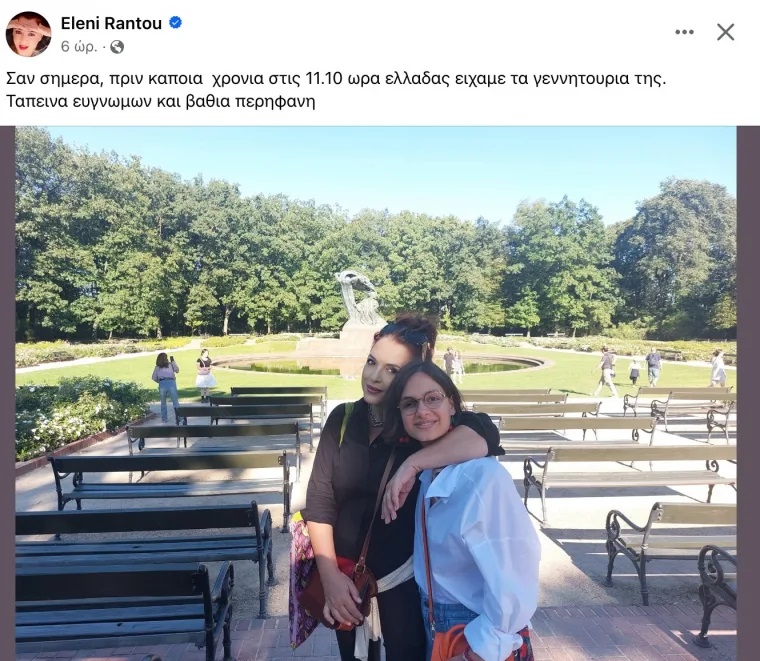 Σε φωτογραφία μάλιστα που πόσταρε στον προσωπικό της λογαριασμό στο Facebook έγραψε: «Σαν σήμερα, πριν κάποια χρόνια στις 11.10 ώρα Ελλάδας είχαμε τα γεννητούρια της. Ταπεινά ευγνώμων και βαθιά περήφανη».