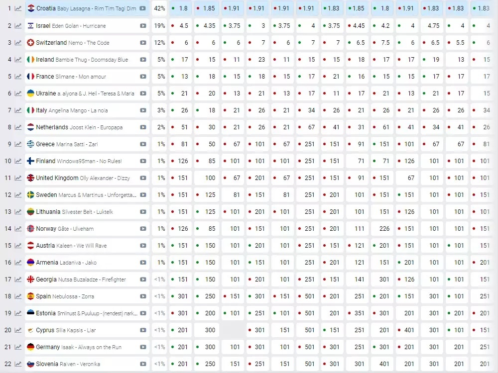 Η Κροατία παραμένει το απόλυτο φαβορί και ακολουθεί η Ελβετία.