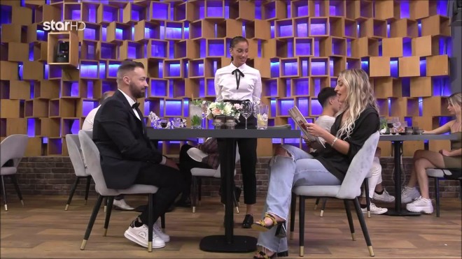 Μέχρι να έρθουν τα πιάτα που παρήγγειλαν, η 30χρονη από τη Φλώρινα πήγε στο μπάνιο, για να μιλήσει με τη φίλη της και “πετσόκοψε” τον Γιάννη για τις ενδυματολογικές του επιλογές, λέγοντας “είναι ένας φλώρος με παπιγιόν. Ναι, σου λέω. Δεν ξέρω. Ό,τι να ‘ναι, έχω κλάψει”.