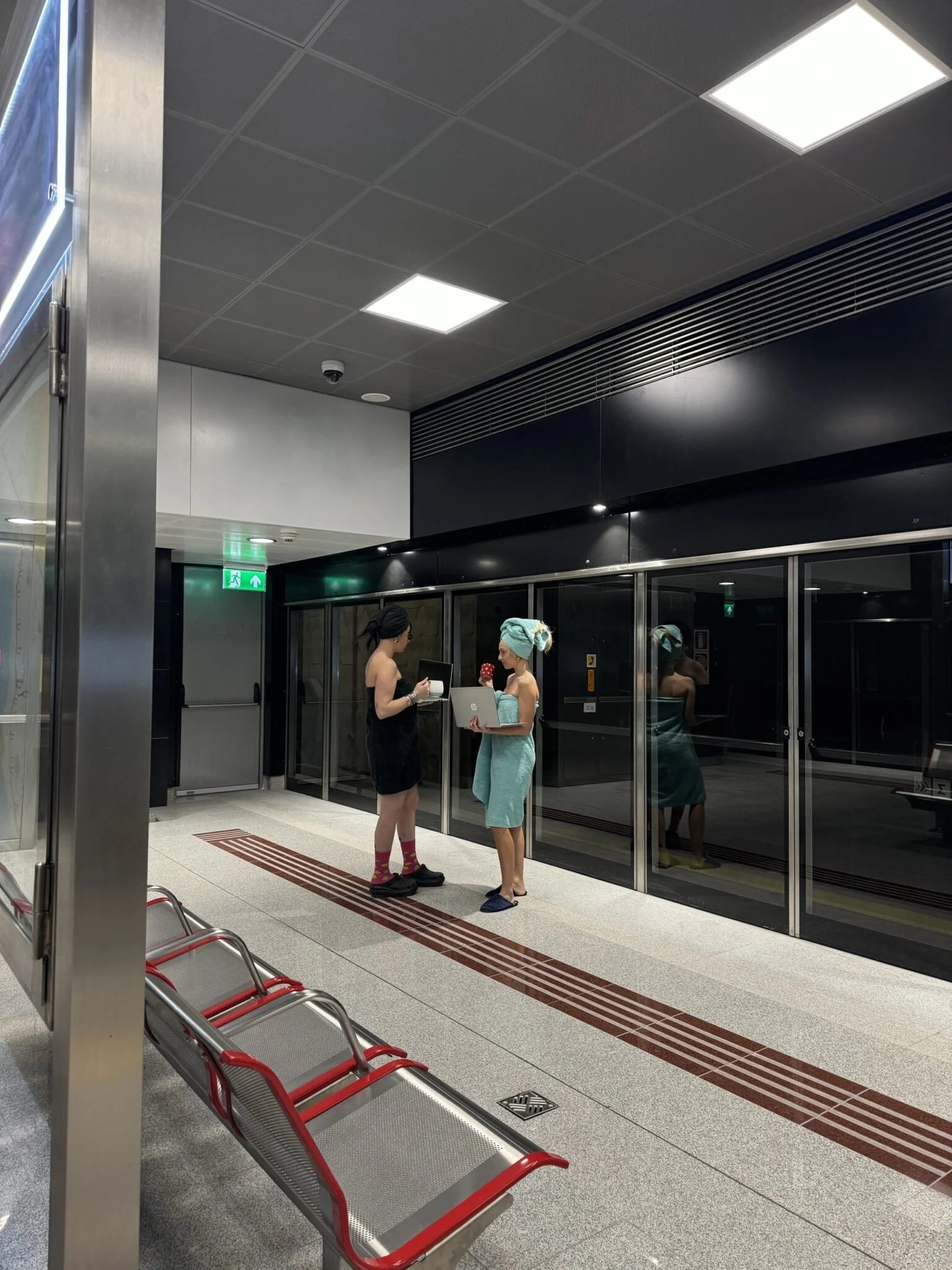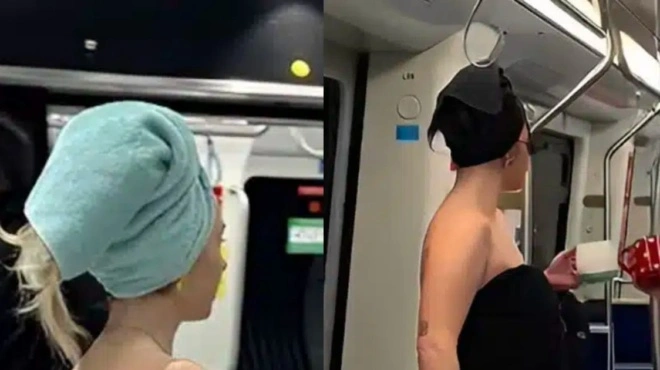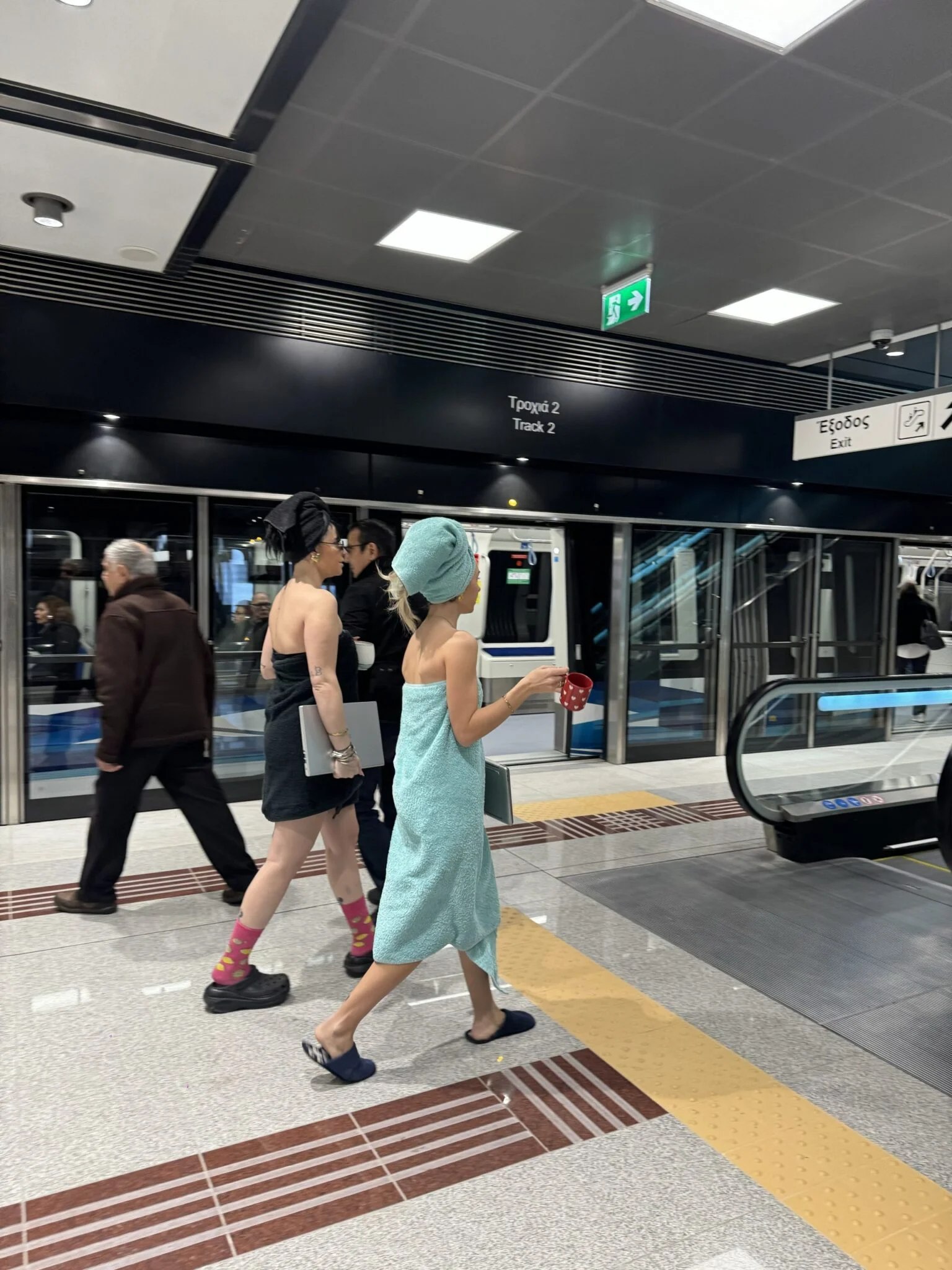 Δύο κορίτσια με πετσέτες σε κεφάλι και σώμα, “παρέλασαν” στους συρμούς του μετρό Θεσσαλονίκης σαν να είναι στο… μπάνιο τους.