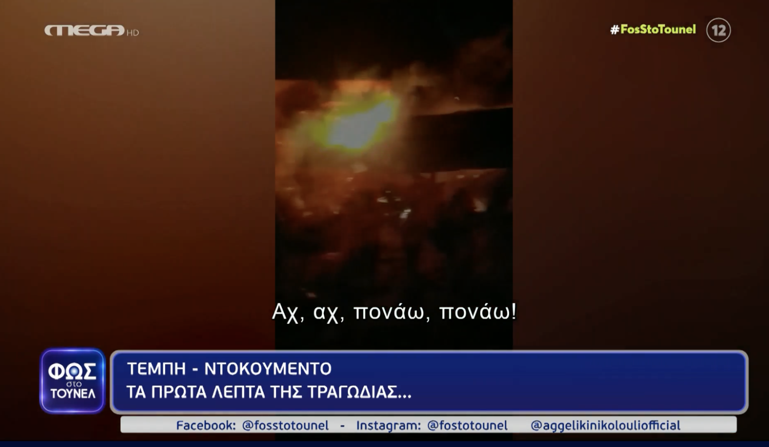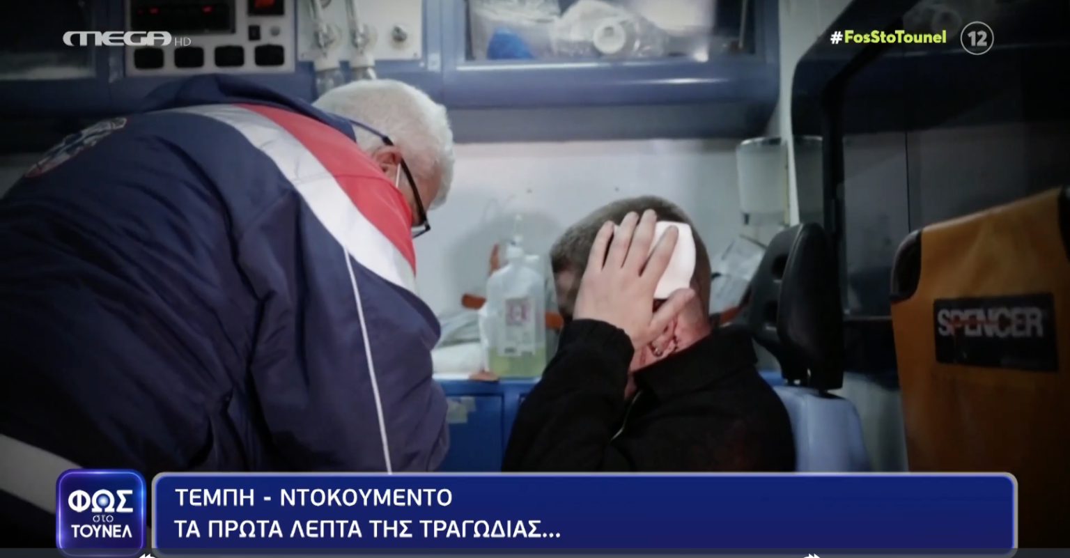 Σε αυτές, βλέπουμε φορεία, κόσμο να ουρλιάζει, μια γυναίκα να κλαίει με λυγμούς και να λέει «πονάω μαμά!», τραυματίες να δέχονται τις πρώτες βοήθειες αλλά και πλάνα από το φλεγόμενο τρένο-γροθιά στο στομάχι.