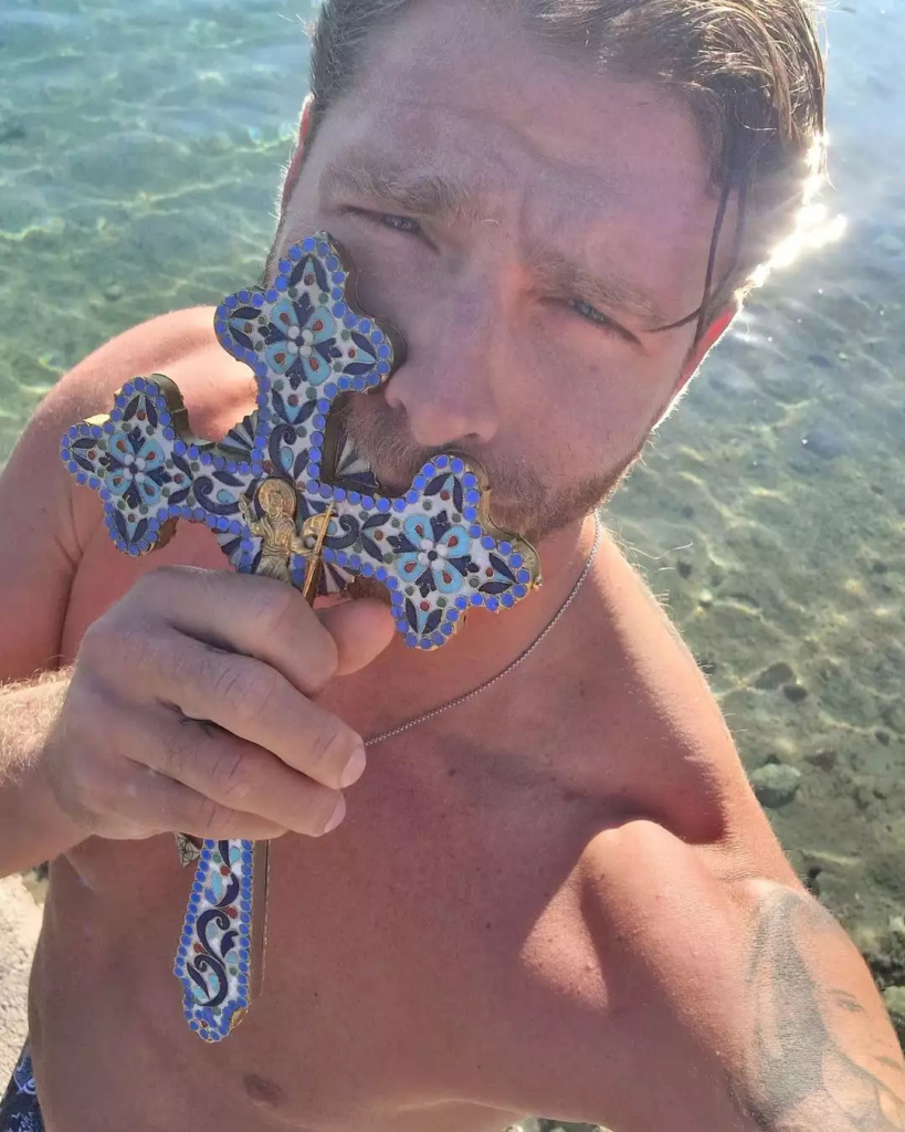 Αλλά ο Μάνικας ο μεγάλος είδε ότι ο γιος του δεν κατάφερε να πιάσει τον σταυρο και βούτηξε κάτω από το παιδάκι με αρκετό μένος για να τον δώσει μετά στον γιο του 😂😂😂
