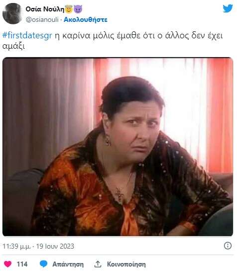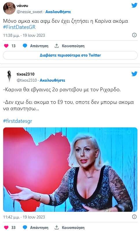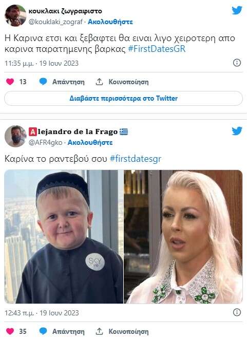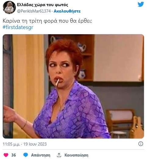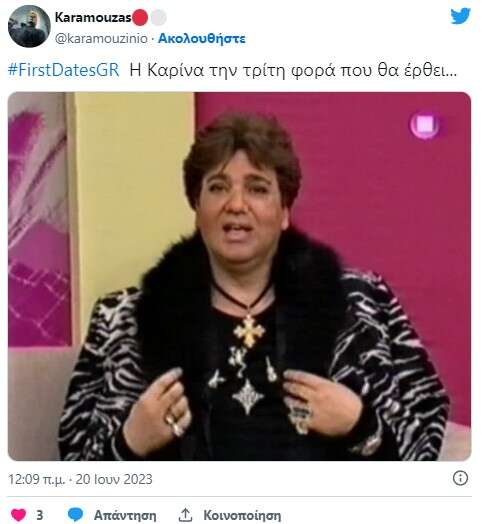 Η επιστροφή της Καρίνα από το First Dates δεν έμεινε ασχολίαστο από το Twitter, με τους χρήστες να κατακλύζουν την πλατφόρμα με αρνητικά σχόλια και memes για εκείνη.
