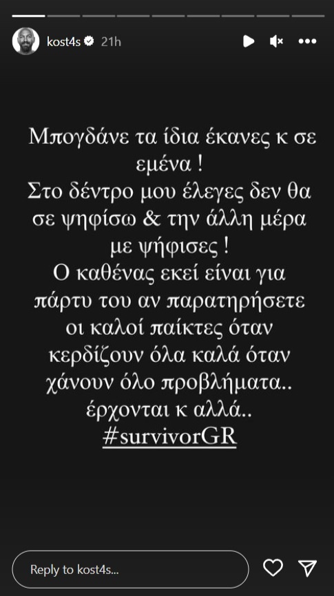 Με απανωτά στόρις στον προσωπικό του λογαριασμό στο Instagram έκανε κάποιες αποκαλύψεις για τα παρασκήνια του Survivor All Star.