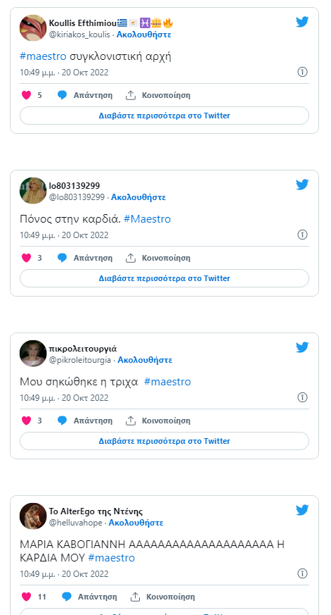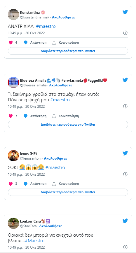 Maestro – Δείτε σχόλια από το twitter για την σκληρή σκηνή βίας και την συγκλονιστική ερμηνεία της Μαρίας Καβογιάννη: