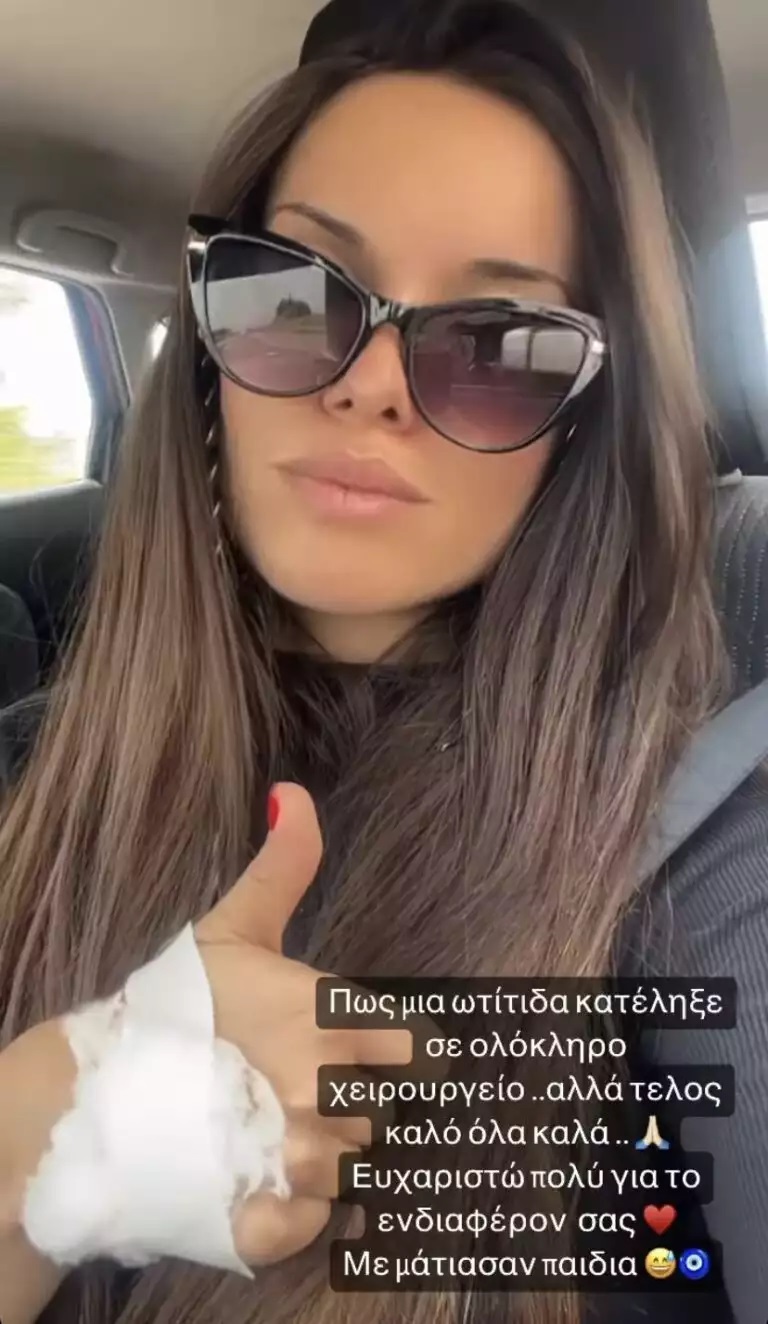 Αρχικά, η Μαρία Μπέη είχε δημοσιεύσει μια φωτογραφία μέσα από το νοσοκομείο, χωρίς να δίνει περισσότερες λεπτομέρειες για τον λόγο που βρέθηκε εκεί. Λίγες ώρες αργότερα, όμως επέστρεψε με νέα ανάρτηση, αποκαλύπτοντας πως αναγκάστηκε να μπει σε χειρουργείο λόγω της ωτίτιδας.