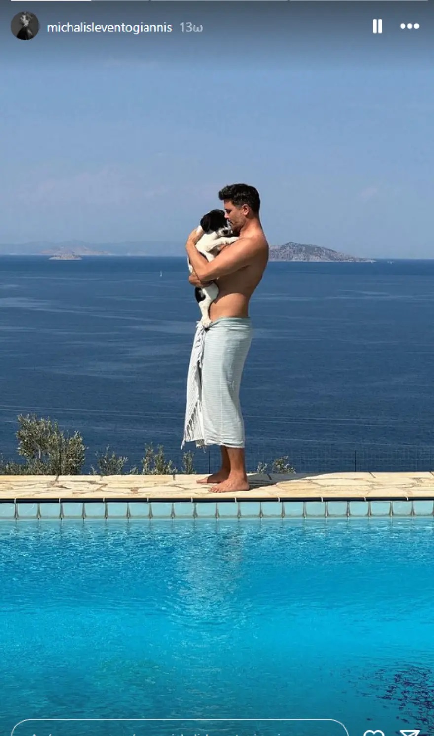 Ο Μιχάλης Λεβεντογιάννης γιόρτασε τα γενέθλιά του απολαμβάνοντας το μπάνιο του και ηλιοθεραπεία σε πισίνα.