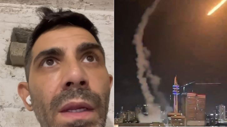 Ο Γιώργος Σέμος κατέγραψε σε βίντεο μία από τις επιθέσεις του Ιράν στο Ισραήλ. Πύραυλοι πέφτουν σε μία πολυκατοικία, σειρήνες ακούγονται στην περιοχή, ενώ ο ίδιος και άλλοι μαζί του τρέχουν για να κρυφτούν στο καταφύγιο.
