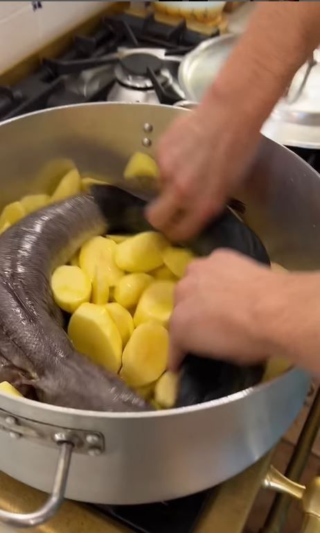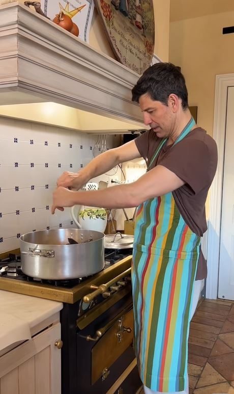 O τραγουδιστής φορώντας μία ριγέ ποδιά για να μη λερωθεί ετοίμασε «Ψάρι Bianco», ώστε να κάνουν μια παύση από τα κρεατικά και μας έδειξε καρέ καρέ την νοστιμότατη συνταγή και στο τέλος έβαλε και λεμόνια από τον κήπο του σπιτιού του.