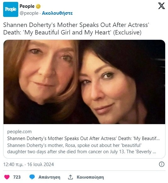 Η μητέρα της Σάνεν Ντόχερτι μίλησε για την πολυαγαπημένη της κόρη, η οποία έφυγε από τη ζωή σε ηλικία 53 ετών μετά από πολυετή μάχη με τον καρκίνο.