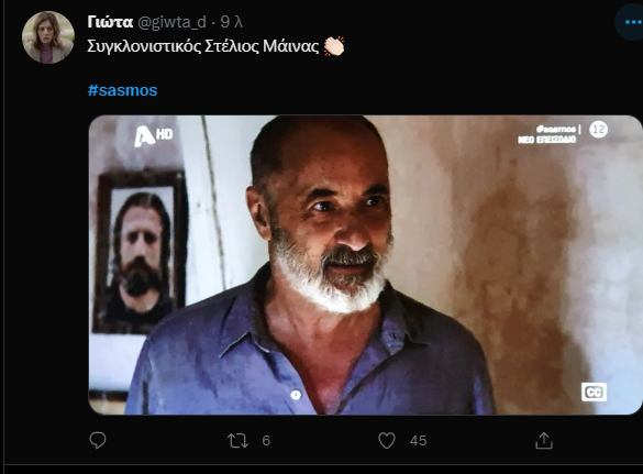 Στο αποψινό επεισόδιο του Σασμού προβλήθηκε η σκηνή που η γιαγιά Ρηνιώ συναντά για πρώτη φορά μετά από 20 χρόνια τον ανιψιό της, Παύλο Βρουλάκη, η οποία καθήλωσε το τηλεοπτικό κοινό και έκανε τους χρήστες του twitter να παραληρούν.