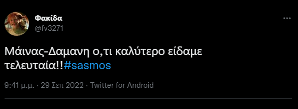 Όσο για τις ερμηνείες των δύο ηθοποιών, της Όλγας Δαμάνη και του Στέλιου Μάινα, και οι δύο αποθεώθηκαν με τα σχόλια των χρηστών του Twitter.