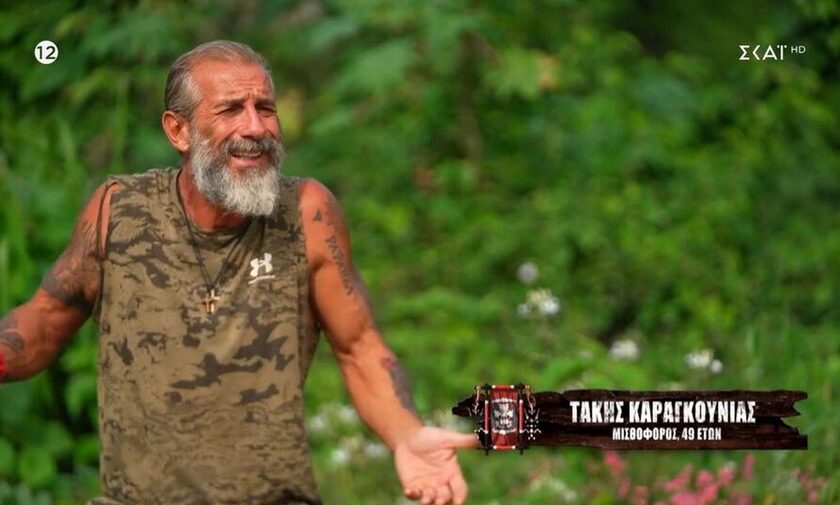 Όπως υπογράμμισε σήμερα, Τετάρτη, ο δημοσιογράφος της πρωινής εκπομπής «το αγώνισμα επάθλου χωριζόταν σε δύο μέρες, ένα γύρισμα έγινε τη Δευτέρα και ένα γύρισμα έπρεπε να γίνει την Τρίτη, όμως διακόπηκε λόγω της έντασης που δημιούργησε ο Τάκης Καραγκούνιας όταν έχασε. Χάνει και κλωτσάει έναν κάδο, που ξεπλένουν τις λάσπες. Τραυματίζεται και η γιατρός τον βγάζει εκτός. Όμως η απόδοση του Τάκη δεν ήταν καλή και η μπλε ομάδα τον κατηγορεί ότι το έκανε σκοπίμως για να βγει εκτός αγώνα και να παίζουν οι άλλοι που ήταν καλύτεροι… Τον κατηγορούν για την πρόθεση. Τον κατηγορούν ότι το έκανες επίτηδες με σκοπό αργότερα να πει “φεύγω”».