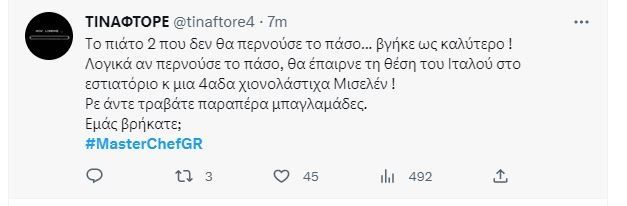 «Αυτό ήταν, τέλος και για φέτος! Τουλαχιστον το 8 είναι καλύτερο από το 12. Βέβαια και το 1 θα ήταν ακόμα καλύτερο, αλλά τι να κάνουμε, that’s life, έχει και τα πάνω της, έχει και τα κάτω της. Είμαι φουλ happy για όλη την εμπειρία του MasterChef 7, τις δοκιμασίες, τους κριτές και όλα αυτά που έκαναν αυτό το ταξιδι special. Και να θυμάστε mates, αν ζείτε χωρίς άγχος μερικές φορές το απολαμβάνετε περισσότερο και ειστε πιο ακομπλεξάριστοι!