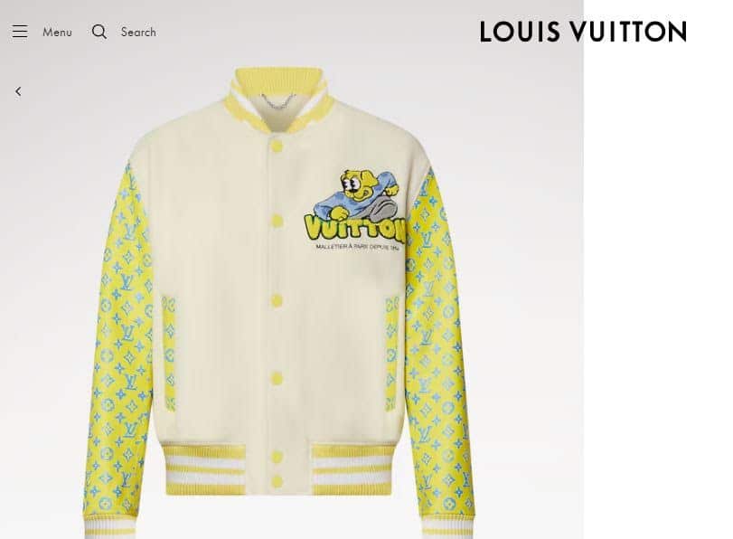 Ο Μαζωνάκης επέλεξε ένα κίτρινο τζάκετ με κινούμενα σχέδια που αποτυπώνει την παιδική ηλικία έτσι όπως την εμπνεύστηκε η Louis Vuitton.