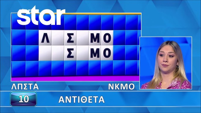 Η κατηγορία ήταν «αντίθετα» και η παίκτρια επέλεξε το Ο, το Ν, το Κ και το Μ. Μόλις άνοιξαν τα γράμματα και πριν προλάβει ο παρουσιαστής να πει λέξη, η παίκτρια φώναξε «το έχω λύσει».