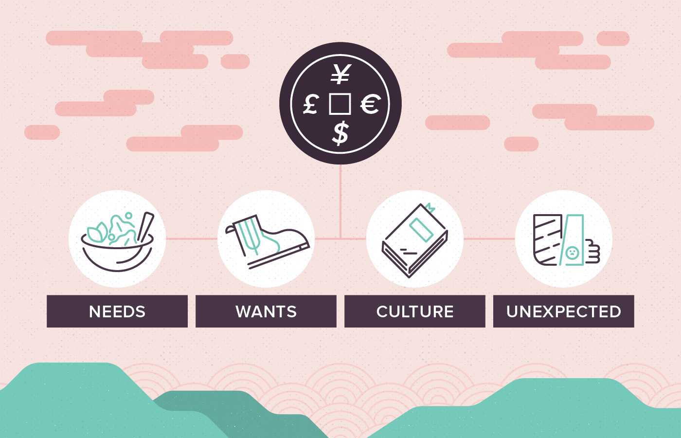 Το Kakeibo καθορίζει τέσσερις “πυλώνες” ή κατηγορίες δαπανών: