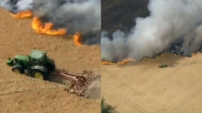 Η συγκλονιστική στιγμή που ο αγρότης διακόπτει την πορεία της πυρκαγιάς