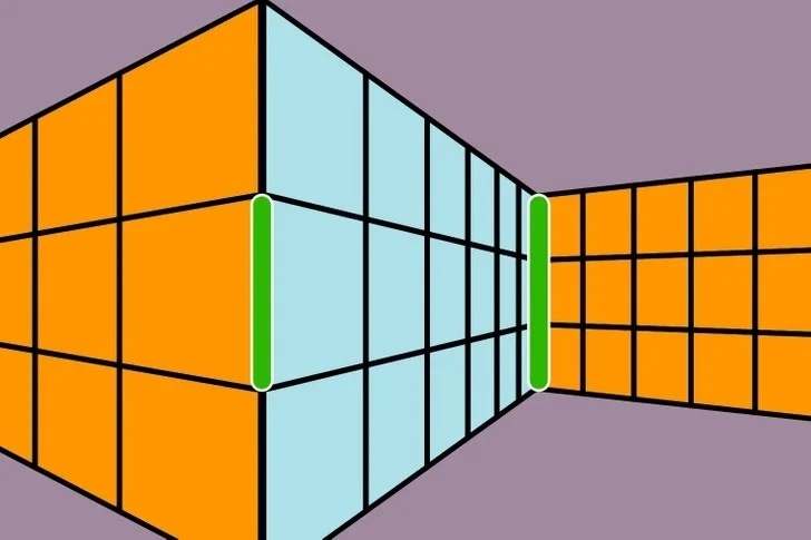 Η οπτική ψευδαίσθηση είναι δύσκολη καθώς οι διαφορές γραμμές και τα διαφορετικά σχήματα που υπάρχουν, αλλάζουν το βάθος της εικόνας. Ποια πράσινη γραμμή είναι μεγαλύτερη;