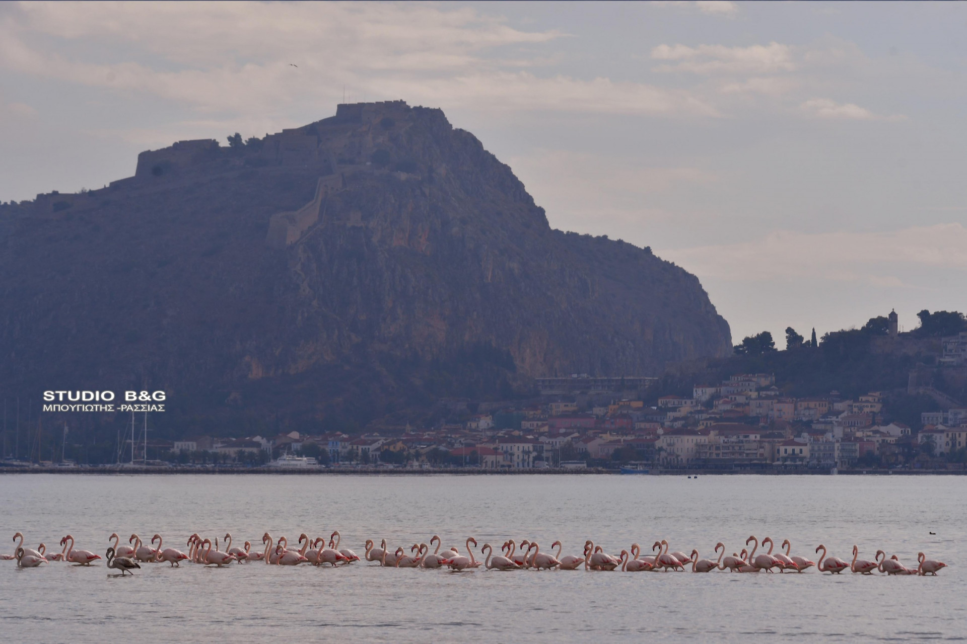 Αργολίδα: Οι εικόνες από τα όμορφα φλαμίνγκο