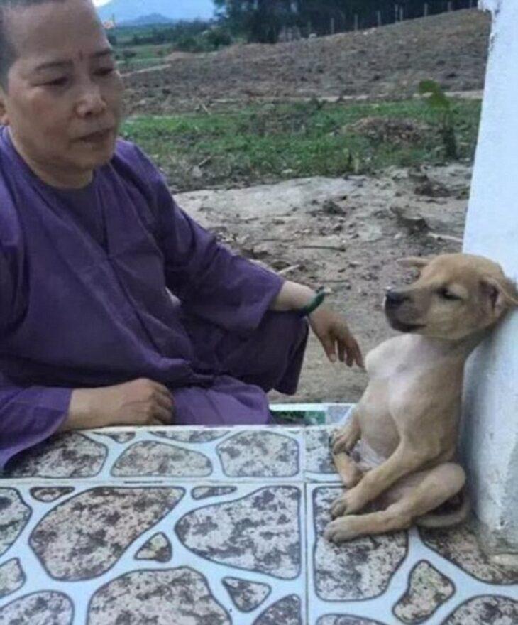 Το τετράποδο είναι σε στάση Ζεν και σίγουρα μαθαίνει διαλογισμό από τις μοναχές.