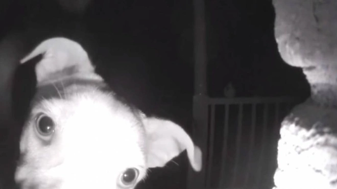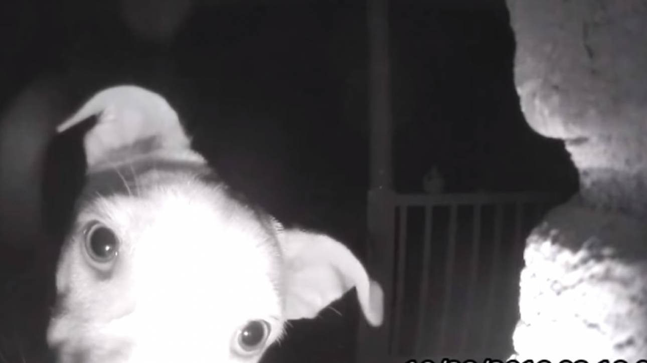 Οι σκηνές καταγράφηκαν λίγο μετά τις 2:00 από την κάμερα που υπήρχε στο κουδούνι της οικίας. Το σκυλί εμφανίζεται ξαφνικά και μυρίζει μετά μανίας γύρω από το σημείο που είναι η κάμερα. Κατόπιν χρησιμοποιεί την μουσούδα του για να πατήσει το κουδούνι, ο ήχος του οποίου ακούγεται στο βάθος. Αφού περιμένει για λίγο, μετά ακούει ένα θόρυβο από μακριά και κατεβαίνει από την βεράντα, για να επιστρέψει και πάλι και να δοκιμάσει να χτυπήσει το κουδούνι αυτή τη φορά με το πόδι. Κοντοστέκεται και περιμένει να του ανοίξουν, άγνωστο για πόση ώρα, αφού το βίντεο κάπου εκεί τελειώνει.