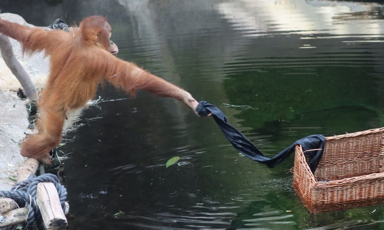 Αφού ο ουρακοτάγκος τα κατάφερε, πήρε το βρεγμένο πανί και ανέβηκε σε ένα ψηλό σημείο της ζούγκλας και το κρέμασε πάνω από ένα κλαδί.