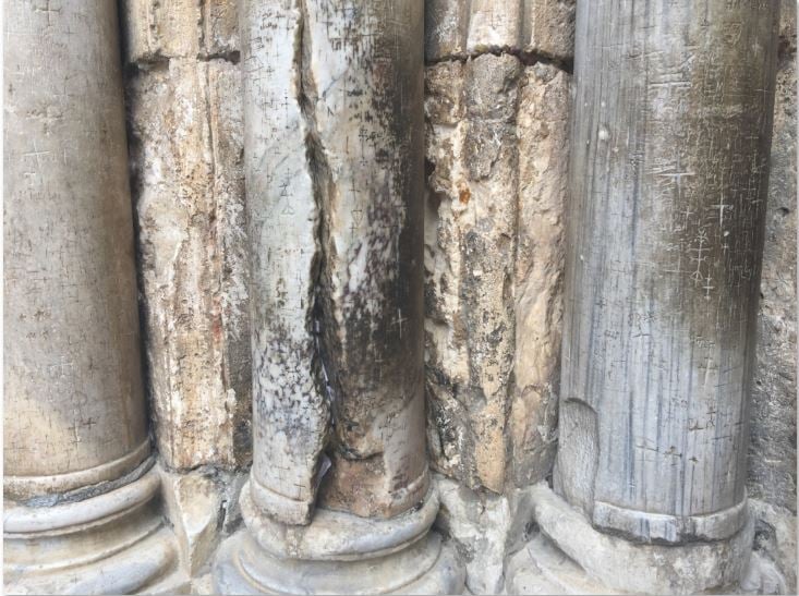 Άγιο Φως: Προκαλεί δέος το θαύμα με τον σχισμένο κίονα στην είσοδο του Πανάγιου Τάφου
