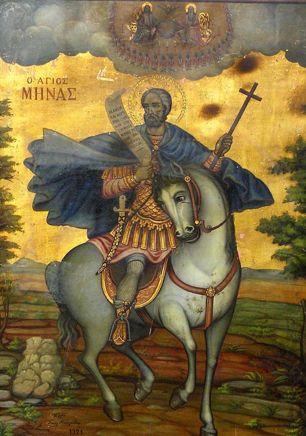 Ο Άγιος Μηνάς γεννήθηκε στην Αίγυπτο στα μέσα περίπου του 3ου αιώνα μ.Χ. από γονείς ειδωλολάτρες.