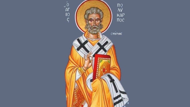 Σύμφωνα με τον συναξαριστή, ο Άγιος Πολύκαρπος (80 – 23 Φεβρουαρίου 167) ήταν επίσκοπος Σμύρνης στο δεύτερο αιώνα μ.Χ.. Βρήκε μαρτυρικό θάνατο στις 23 Φεβρουαρίου του 167 και αναγνωρίστηκε ως άγιος από την Ορθόδοξη και την Καθολική, την Λουθηρανική και την Αγγλικανική εκκλησία.
