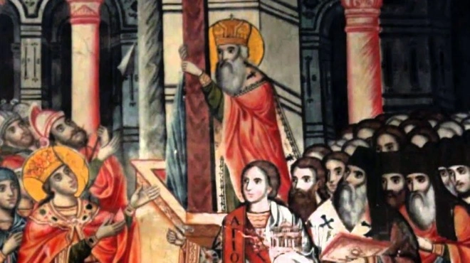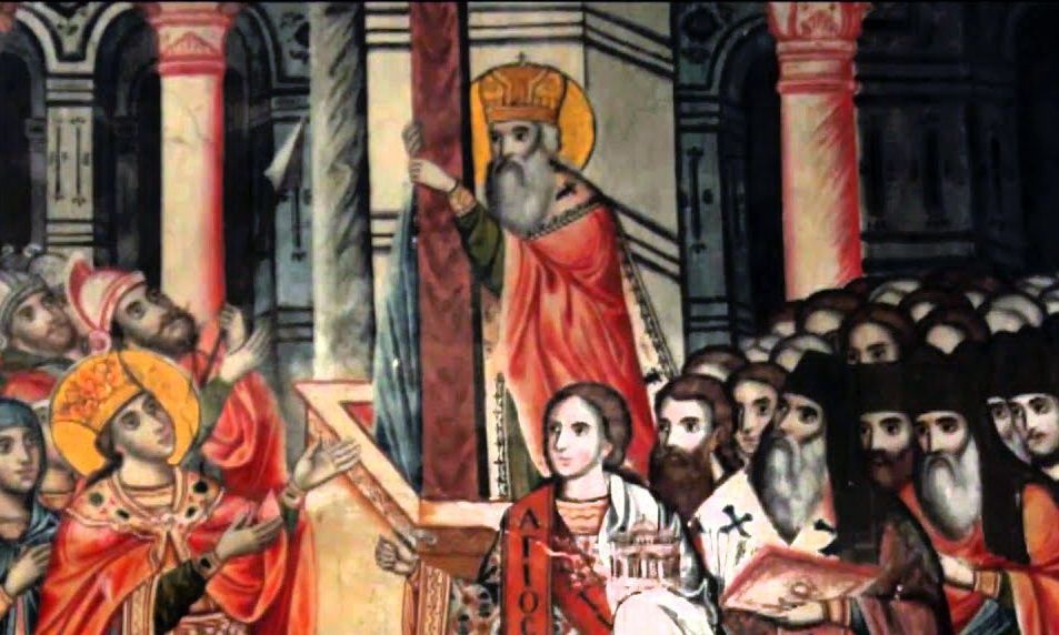 Τότε αρχιεπίσκοπος Ιεροσολύμων ήταν ο Κύριλλος και βασιλιάς ο Κωνσταντίνος, γιος του Μεγάλου Κωνσταντίνου.