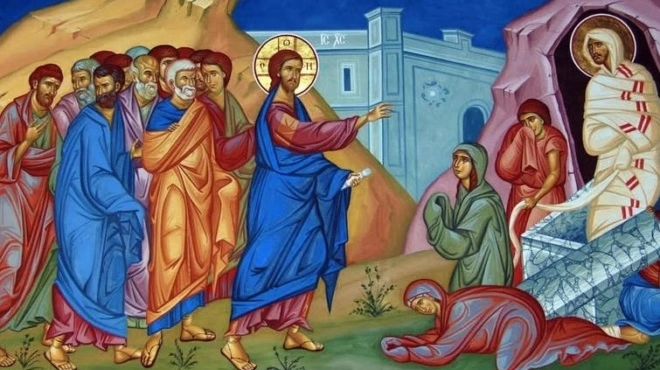 Ο Χριστός ρώτησε το πλήθος: «Πού τον θάψατε;», και αμέσως όλοι ξεκίνησαν για να του δείξουν το μνήμα.