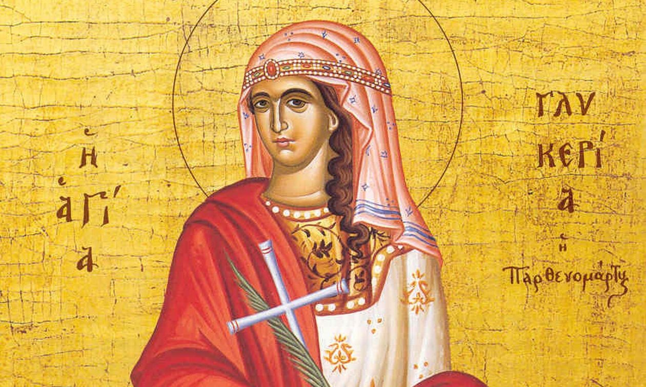 Τὴν καλλιπάρθενον, Χριστοῦ τιμήσωμεν, τὴν ἀριστεύσασαν πόνοις ἀθλήσεως, καὶ ἀσθένεια τῆς σαρκός, τὸν ὄφιν καταβαλοῦσαν πόθω γὰρ τοῦ Κτίσαντος, τῶν βασάνων τὴν ἕφοδον, παρ’ οὐδὲν ἠγήσατο, καὶ θεόθεν δεδόξασται πρὸς ἣν ἀναβοήσωμεν πάντες, χαίροις θεόφρον Γλυκερία.