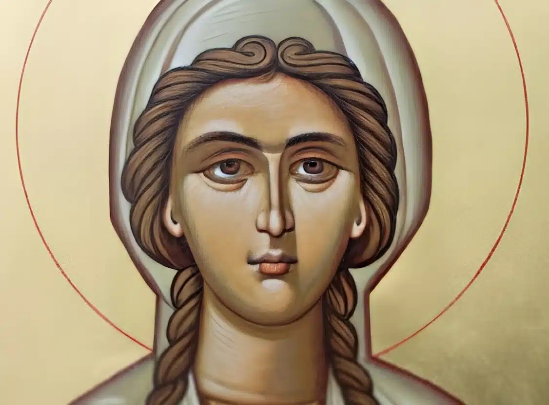 Μόλις πλησίασαν τα μεσάνυκτα, επισκέφθηκαν την Αγία ο Απόστολος Πέτρος, με μορφή γέροντα και ένας Άγγελος, με μορφή παιδιού, που κρατούσε λαμπάδα. Άπλετο φως πλημμύρισε το υγρό και σκοτεινό κελί της Αγίας. Ο Απόστολος γιάτρεψε τις πληγές της και αποκατέστησε τον κομμένο μαστό.