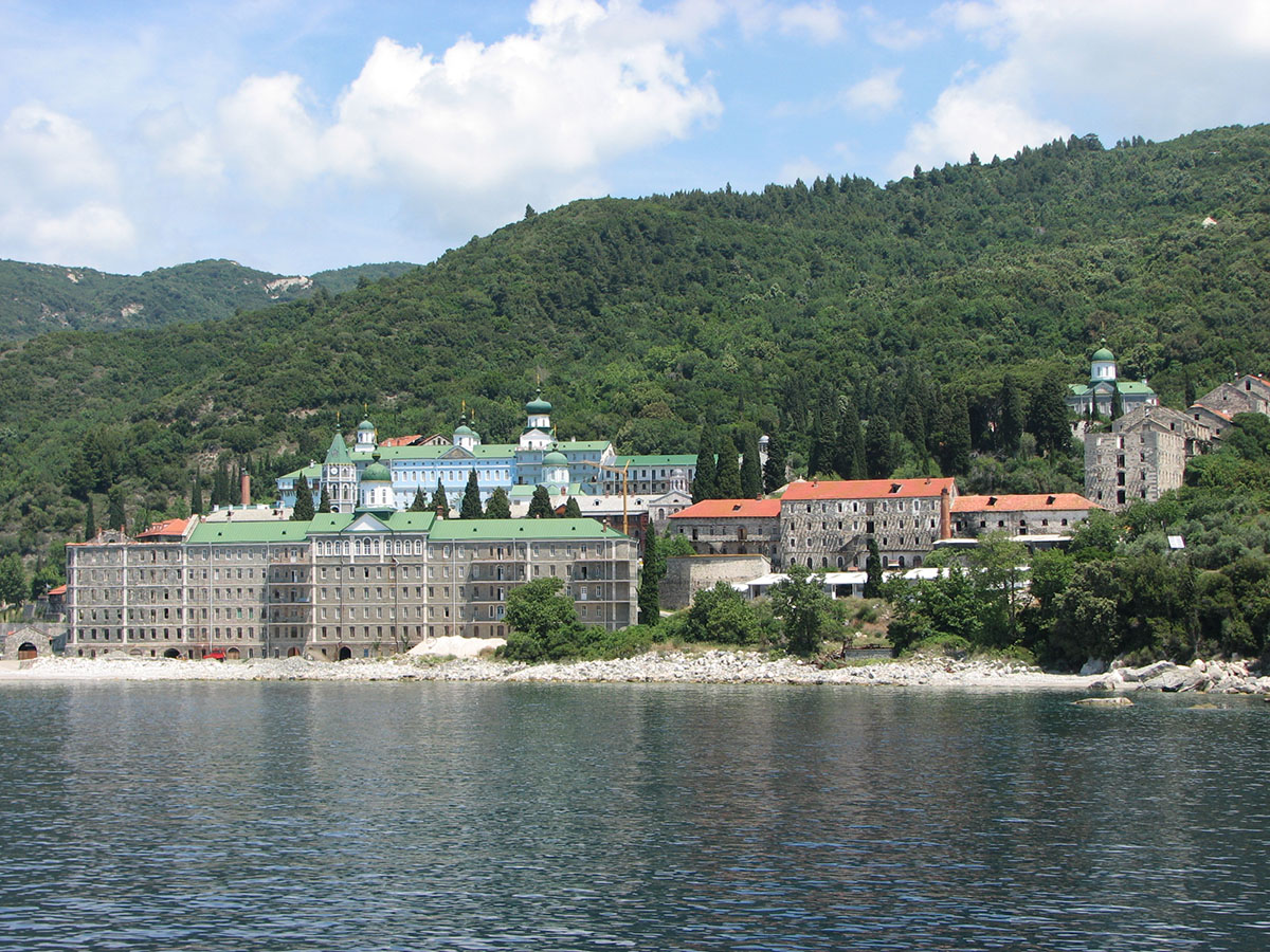 Η παλιά Μονή του Αγίου Παντελεήμονος, γνωστή και ως “Θεσσαλονικέως”, ιδρύθηκε τον 11ο αιώνα και αποτελούσε σημαντικό θρησκευτικό κέντρο στο Άγιο Όρος. Ωστόσο, ερημώθηκε μετά από λίγες δεκαετίες. Ο Άγιος Παντελεήμων, στον οποίο είναι αφιερωμένη η μονή, ήταν ένας χριστιανός γιατρός, το αληθινό όνομα του οποίου ήταν Πανταλέων. Κατά τη διάρκεια της υπηρεσίας του στην αυτοκρατορική αυλή της Νικομήδειας, καταγγέλθηκε ως χριστιανός από τους συναδέλφους του στον αυτοκράτορα Μαξιμιανό, ο οποίος διέταξε τον βασανισμό και τον αποκεφαλισμό του.