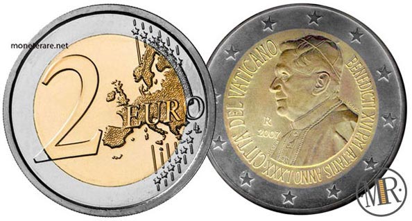 Τέταρτη περίπτωση το κέρμα των 2 Ευρώ, Βατικανό 2007 , για τα 80ά γενέθλια του Πάπα Βενέδικτου ΙΣΤ’.