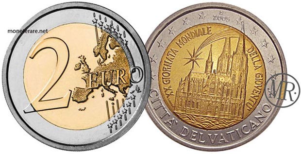 Το κέρμα 2 ευρώ Βατικανό 2005 για τον εορτασμό της 20ής Παγκόσμιας Ημέρας Νεολαίας έχει αξία 213 ευρώ.