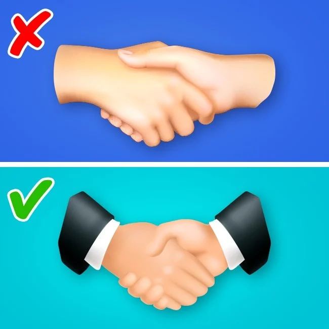 Η χειραψία είναι πολύ σημαντική. Εάν είναι αδύναμη δείχνει έλλειψη εξουσίας ή αυτοπεποίθησης. Από την άλλη, εάν είναι πολύ δυνατή, μπορεί να δείχνει επιθετικότητα. Η χειρότερη χειραψία είναι η αδύναμη με κρύα και ιδρωμένα χέρια.