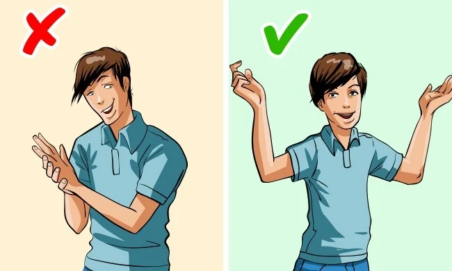 Όταν ένα άτομο κουνάει έντονα τα χέρια του, αυτό δείχνει έλλειψη αυτοπεποίθησης και επαγγελματισμού. Δεν είναι έκπληξη πως οι νευρικές κινήσεις δείχνουν νευρικότητα και ανασφάλεια. Ωστόσο, η έλλειψη χειρονομιών μπορεί να δείξει πως δεν υπάρχει καθόλου ενδιαφέρον.