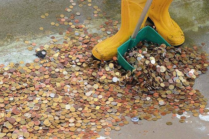 Ακολούθως, «τραβάνε» τα νομίσματα μέσω ενός εύκαμπτου σωλήνα αναρρόφησης κάτω από άγρυπνο βλέμμα των αστυνομικών αρχών, τα οποία, στην συνέχεια, μεταφέρονται στα γραφεία της διεθνούς φιλανθρωπικής οργάνωσης Caritas που υπάγεται στην Καθολική Εκκλησία. Από την πλευρά τους, οι εργαζόμενοι της Caritas απλώνουν τους κουβάδες με τα νομίσματα πάνω σε ένα τεράστιο τραπέζι, προκειμένου να τα στεγνώσουν με «πιστολάκια μαλλιών», ώστε να ξεκινήσει η ταξινόμηση και η καταμέτρηση τους.